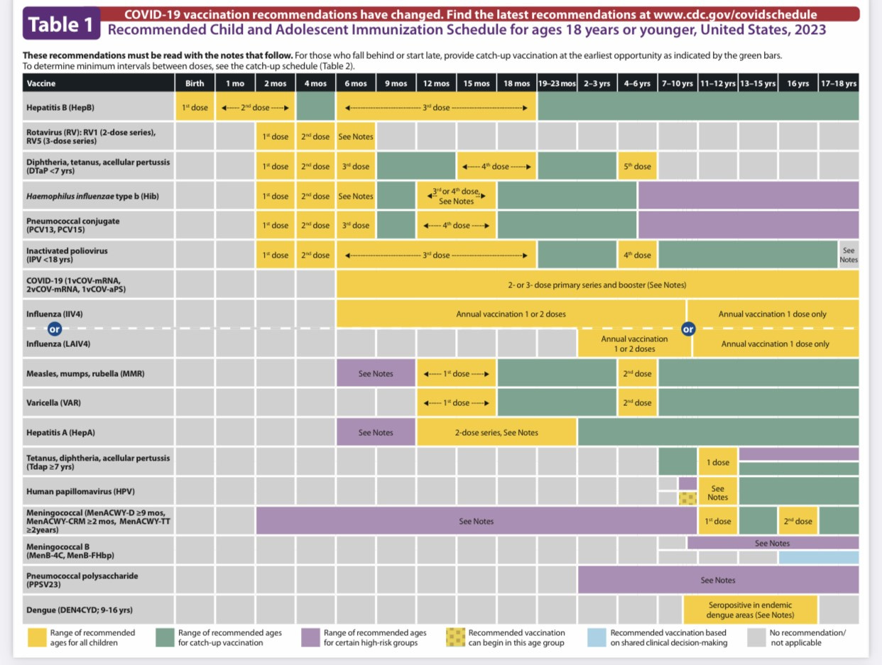 Here is the current (2023) CDC Childhood Vaccination Schedule: