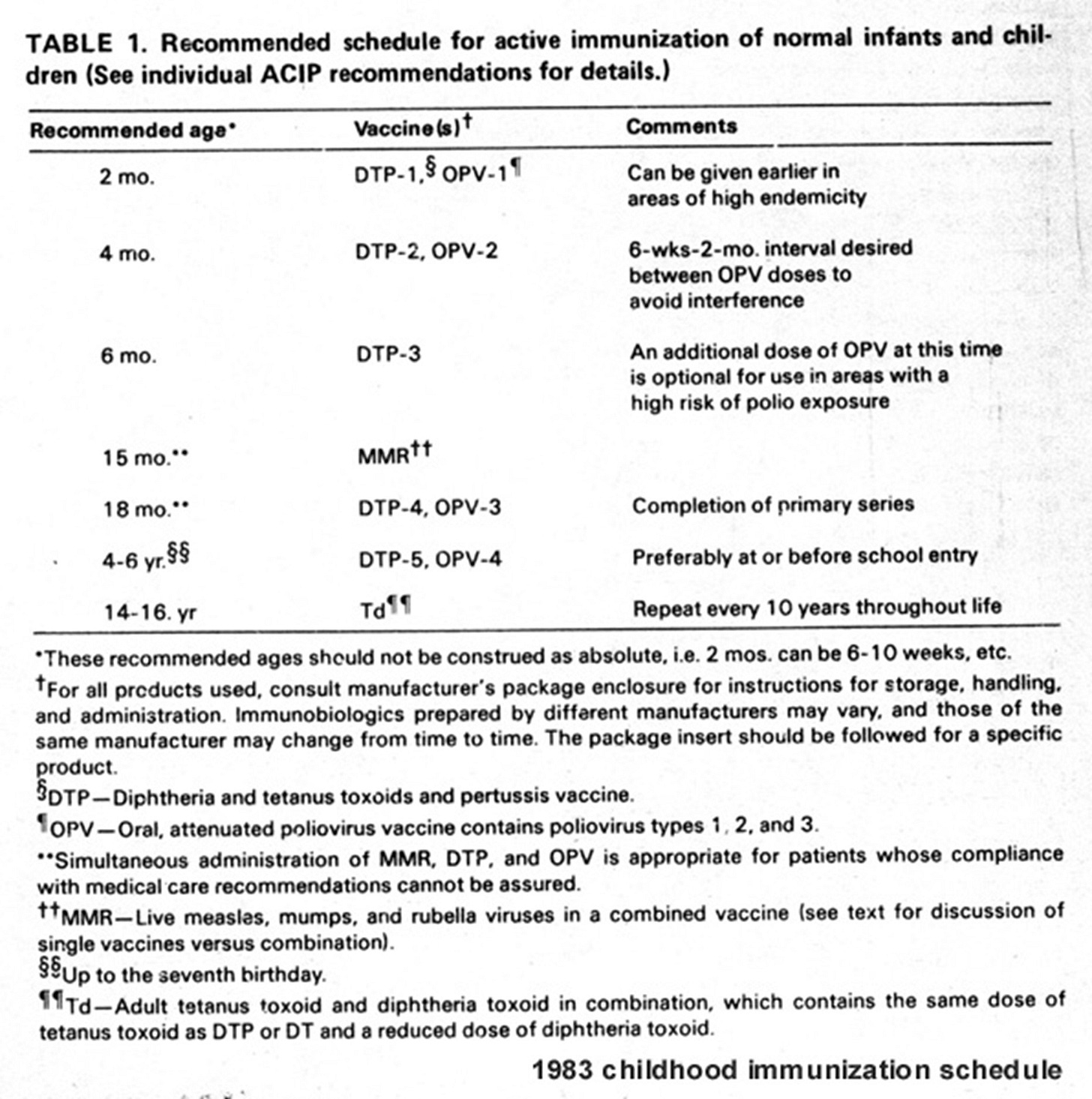 13. Centers for Disease Control (1983). Childhood immunization schedule. Retrieved September 15, 2010 fromhttp://www.generationrescue.org/pdf/cdc1983.pdf